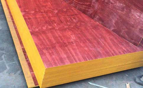 建筑用桉木红板厂家生产的建筑模板板面锯开后中间无空洞,表面涂层为防水性能极强的酚醛树脂,具有平整度高、不翘曲、不变形、强度高、防水性强等特点