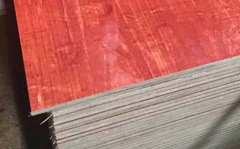 建筑用桉木红板厂家生产的建筑模板板面锯开后中间无空洞,表面涂层为防水性能极强的酚醛树脂,具有平整度高、不翘曲、不变形、强度高、防水性强等特点